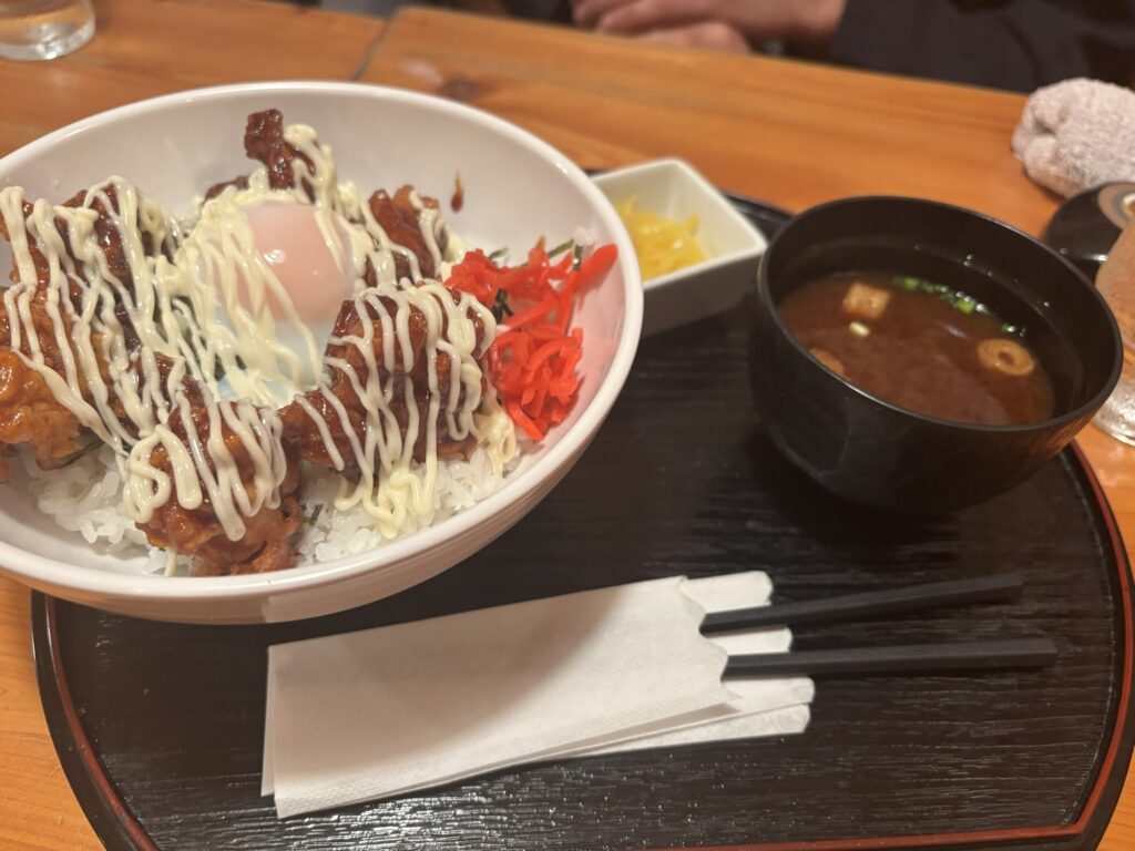 甘辛い唐揚げにマヨネーズと半熟卵は、反則的でパクパクといただきました。